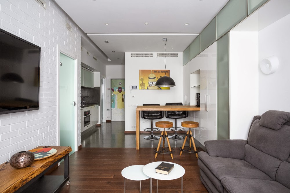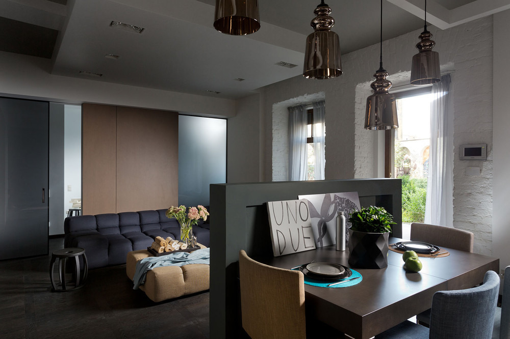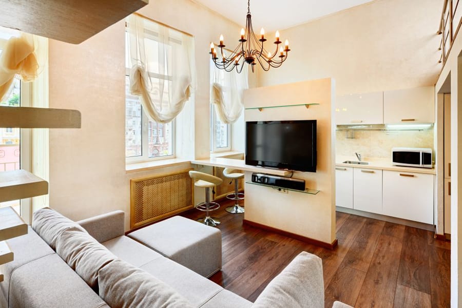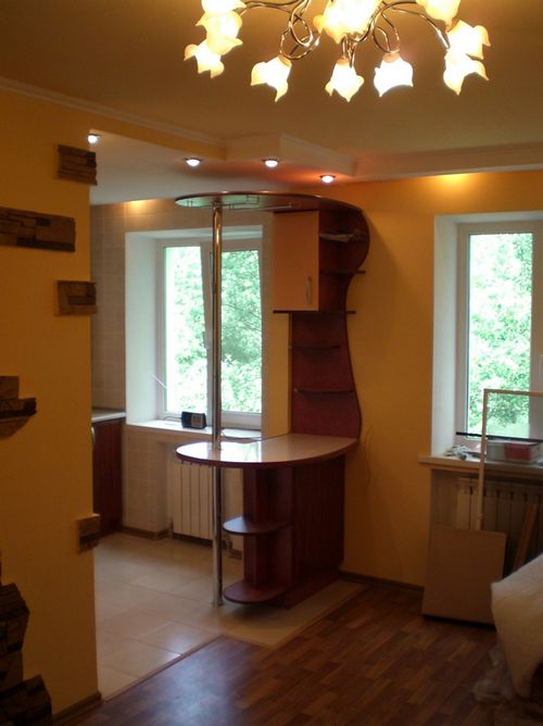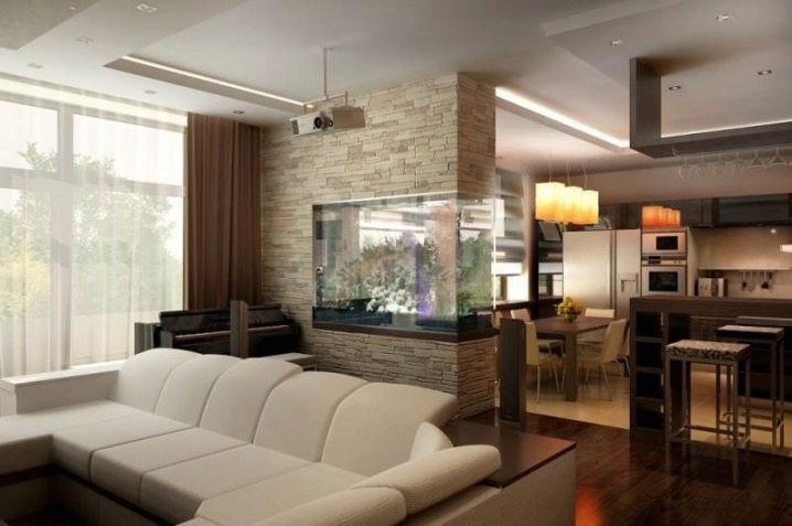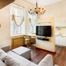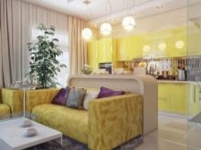 - Souvent, la mise en œuvre d'un tel projet est coûteuse, surtout s'il est nécessaire de démonter les murs porteurs pour se joindre. Dans une pièce, la séparation de haute qualité des zones fonctionnelles peut être coûteuse.
