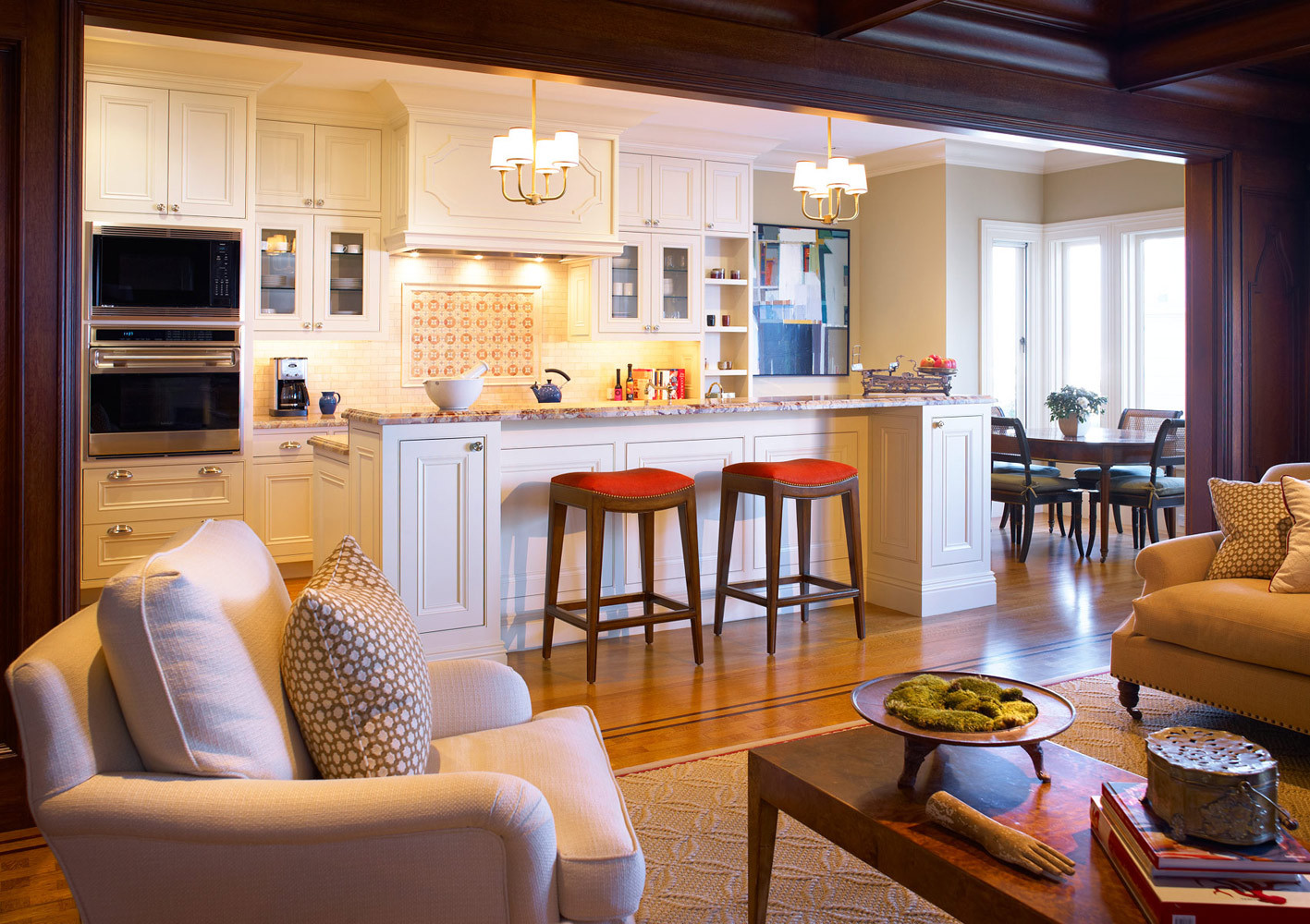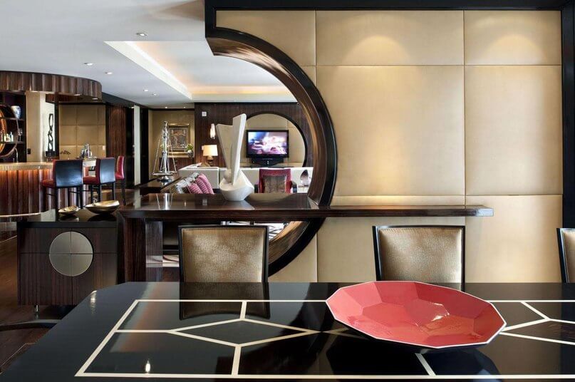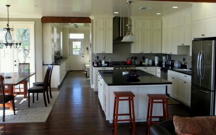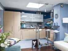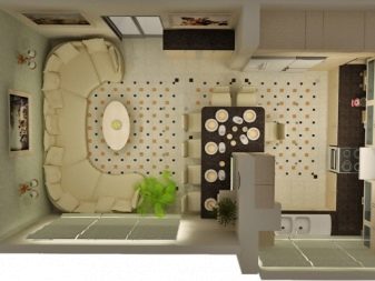 Il est à noter que cette planification des zones combinées de la cuisine et du salon est traditionnellement un phénomène occidental. Il venait de pays où les gens ne sont pas habitués à cuisiner des plats sérieux à la maison: soupes, pâtisseries et plus. Leur coin cuisine est utilisé au maximum pour préparer des collations légères, du thé et du café, pour chauffer des produits semi-finis au micro-ondes. Ainsi, la cuisine dans un tel intérieur combiné joue plus comme un café ou un bar.
