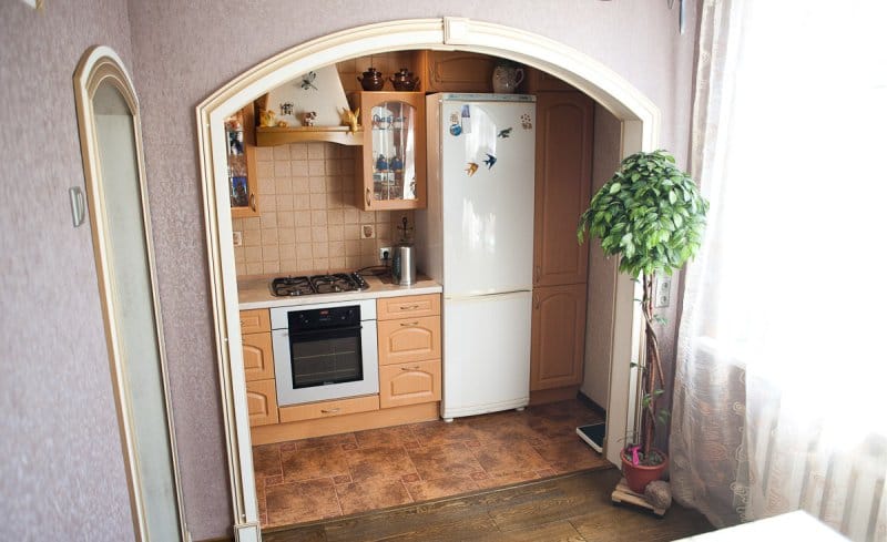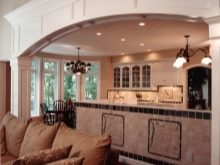 Vous pouvez créer une belle arche séparant la cuisine et le salon en utilisant un minimum d’outils et de matériaux. Vous pouvez travailler dans un petit appartement en 1 à 2 jours. Ce sera non seulement un excellent séparateur visuel, mais aussi un élément fonctionnel, car il retient en quelque sorte le bruit, les odeurs et la vapeur de la cuisine. Vous pouvez y créer des niches pour le stockage.