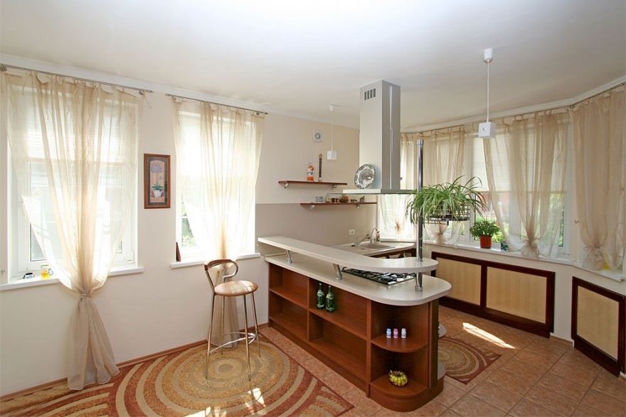 - La surface des murs et des meubles dans la moitié destinée au salon, des vapeurs de cuisine peut se détériorer.