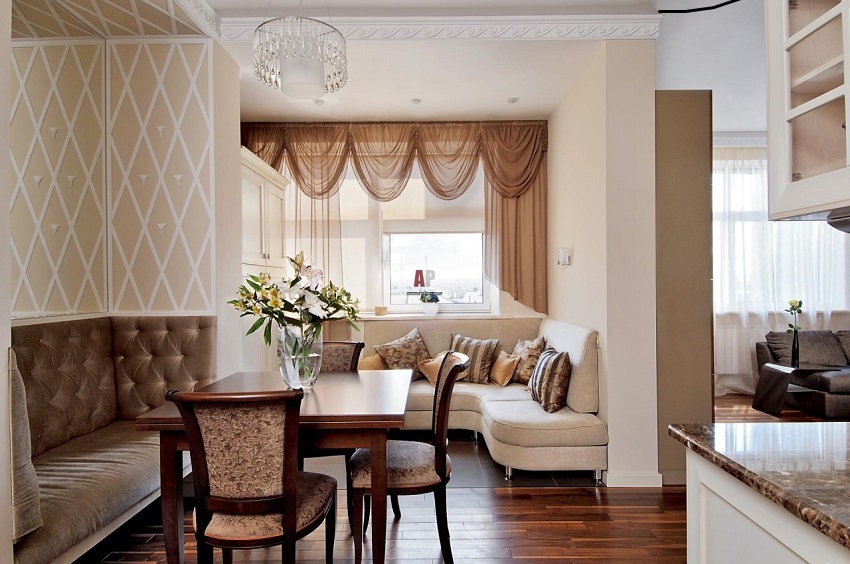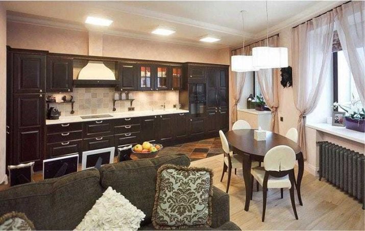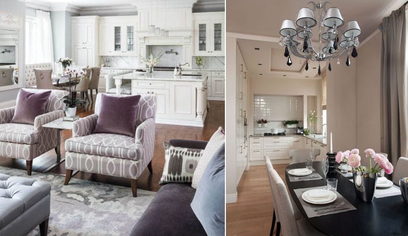 Dans un appartement de ville ou une maison privée, les propriétaires veulent souvent organiser une salle qui combine un lieu pour les repas et un repos confortable pour toute la famille. Ensuite, il y a l'aménagement de la cuisine comme salon-salle à manger, ce qui vous permet de créer un intérieur original et confortable.