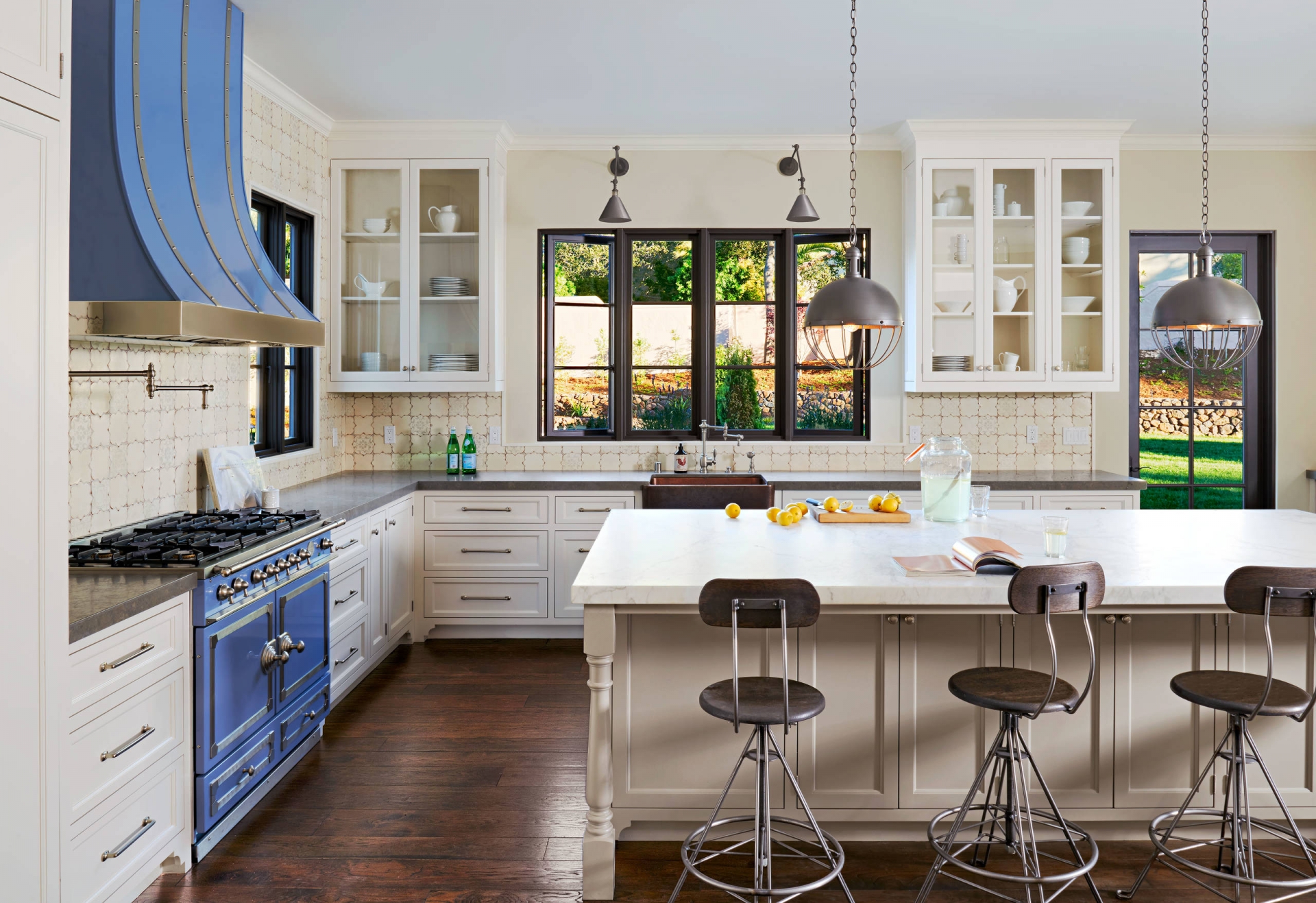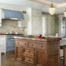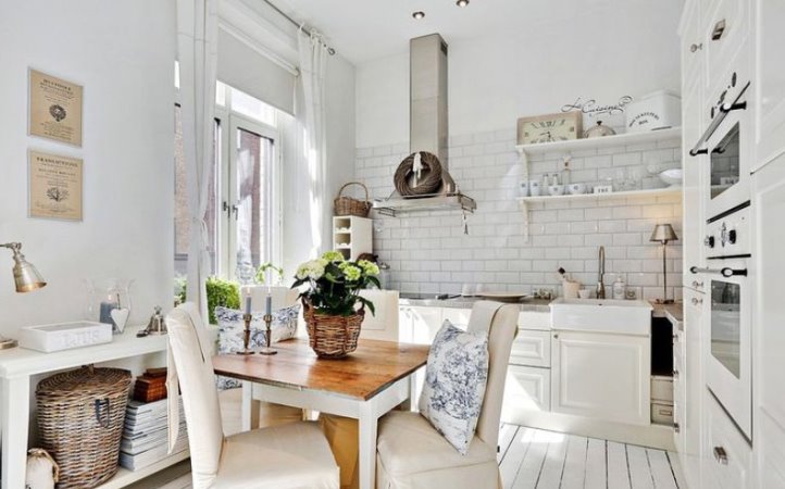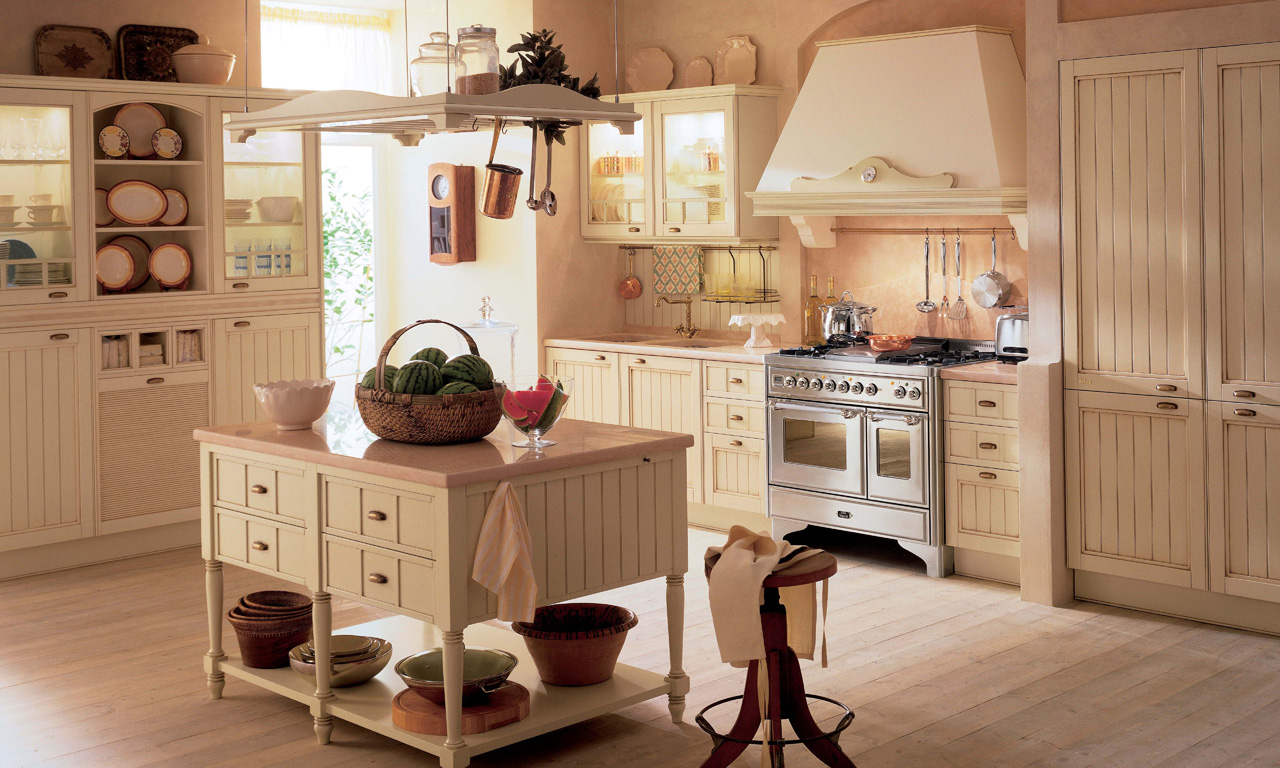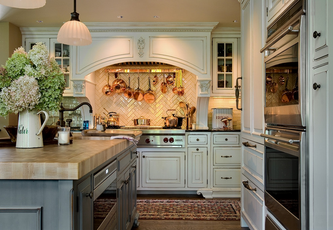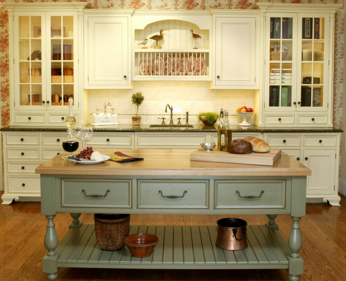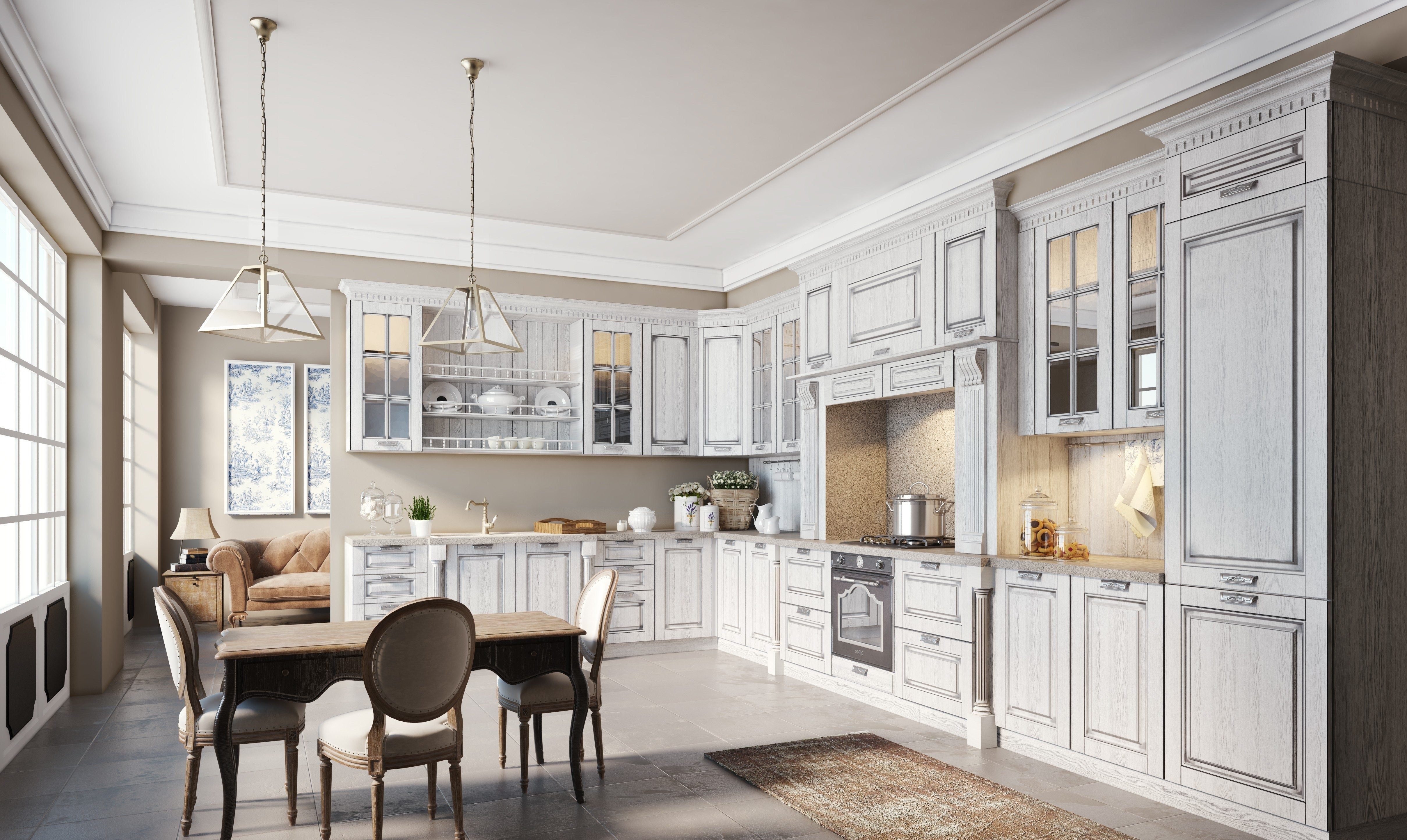 La provence - est l'une des destinations les plus romantiques. Ici, la préférence est donnée aux vieux meubles et aux matériaux donnés par la nature.La formule intérieure de la cuisine de ce style implique la présence de tons pastel délicats avec de petits accents lumineux. Pour le sol, le mieux est le stratifié avec des reliefs mal définis et non rectifiés. Parmi les options, vous pouvez proposer l’utilisation d’un panneau stratifié dans la couleur du chêne blanchi clair.