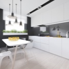 Minimalisme - style de design, qui implique un design intérieur sobre. Les solutions de couleur sont assez modestes et concises. Le plus souvent, lors de la création d'un intérieur de cuisine dans le style du minimalisme, des matériaux stratifiés et en pierre de couleur grise, noire ou blanche sont utilisés. L’élégance du minimalisme ne sera jamais démodée, c’est une direction qui existe en dehors du laps de temps.