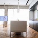 Moderne - Le style utilisé pour la décoration des intérieurs modernes, où abondent les meubles aux formes géométriques régulières, aux tiroirs, aux façades lisses et brillantes. Ce style se caractérise par l'utilisation d'un sol stratifié à la fois sous l'arbre et sous le carreau.