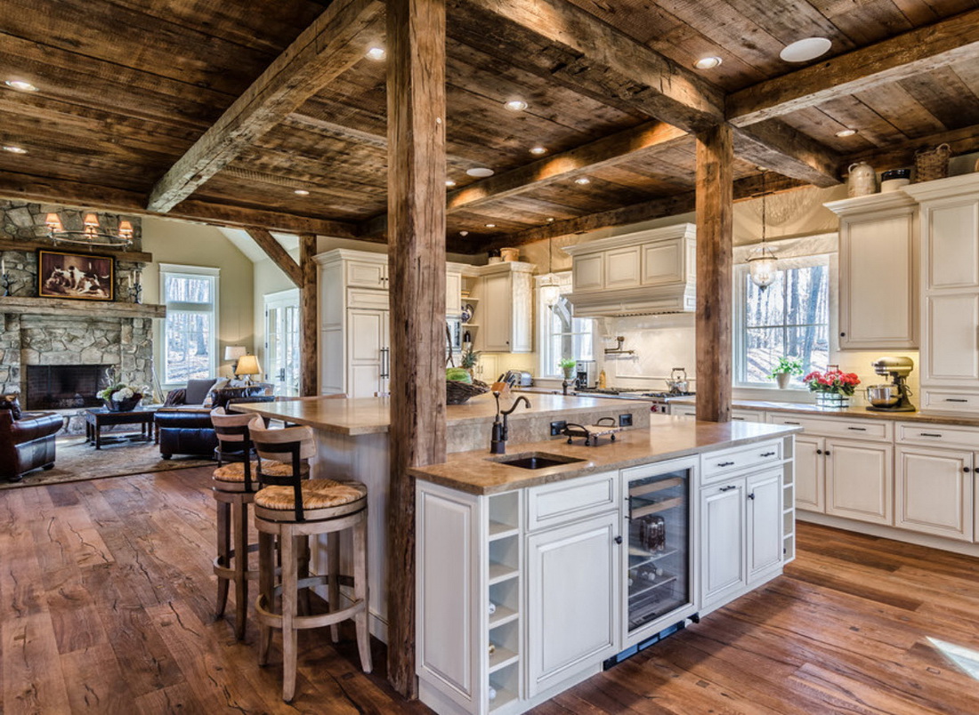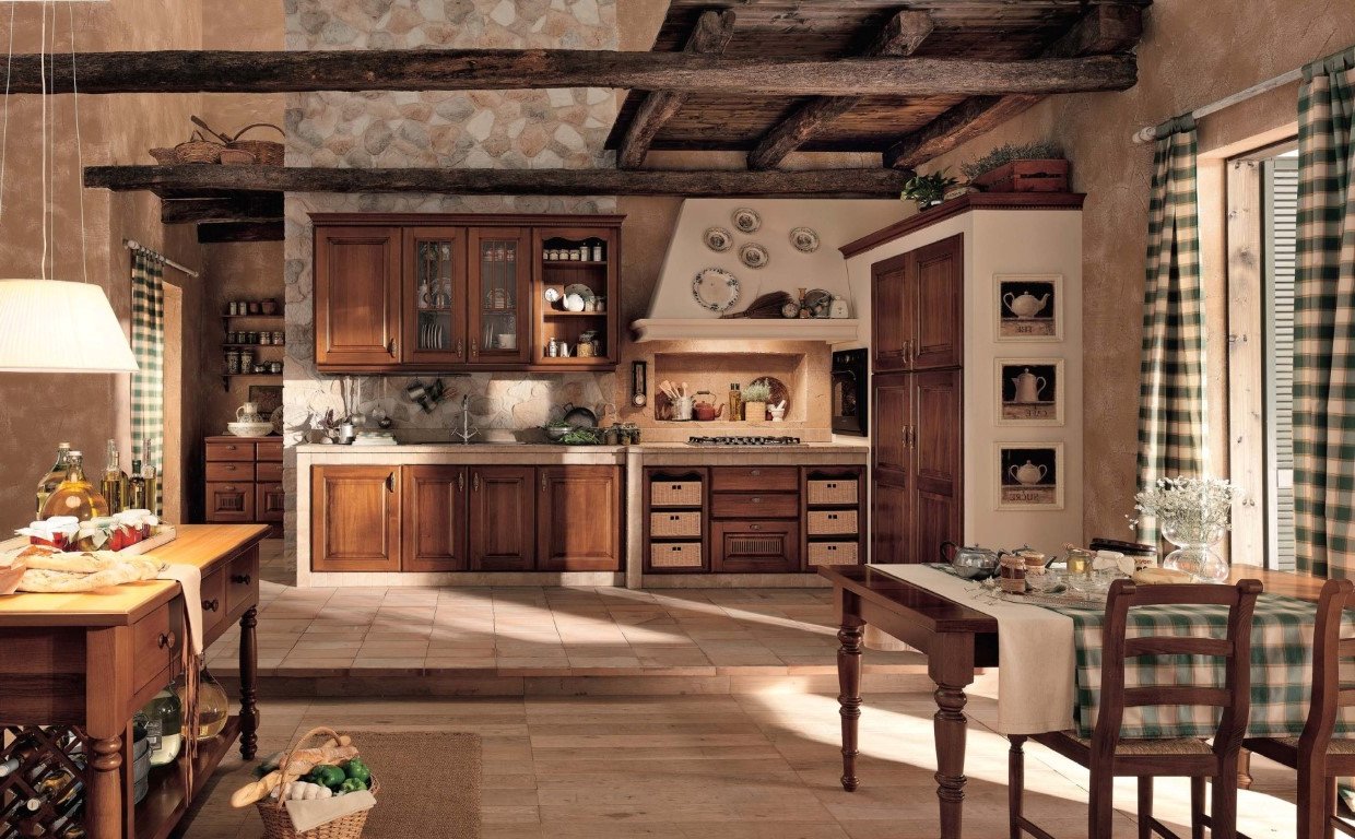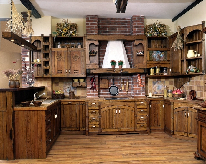 Musique country - style de conception dans lequel une atmosphère particulière est créée en raison de la prédominance d'éléments teintés, de bois brut traité en combinaison avec la forge. Dans ce cas, un stratifié sombre qui répète la texture du rez-de-chaussée ou un stratifié mat imitant le carrelage en céramique est le mieux adapté. L'essentiel dans ce style est le naturel et le naturel, c'est pourquoi on l'appelle parfois à tort «classique», par opposition au moderne.