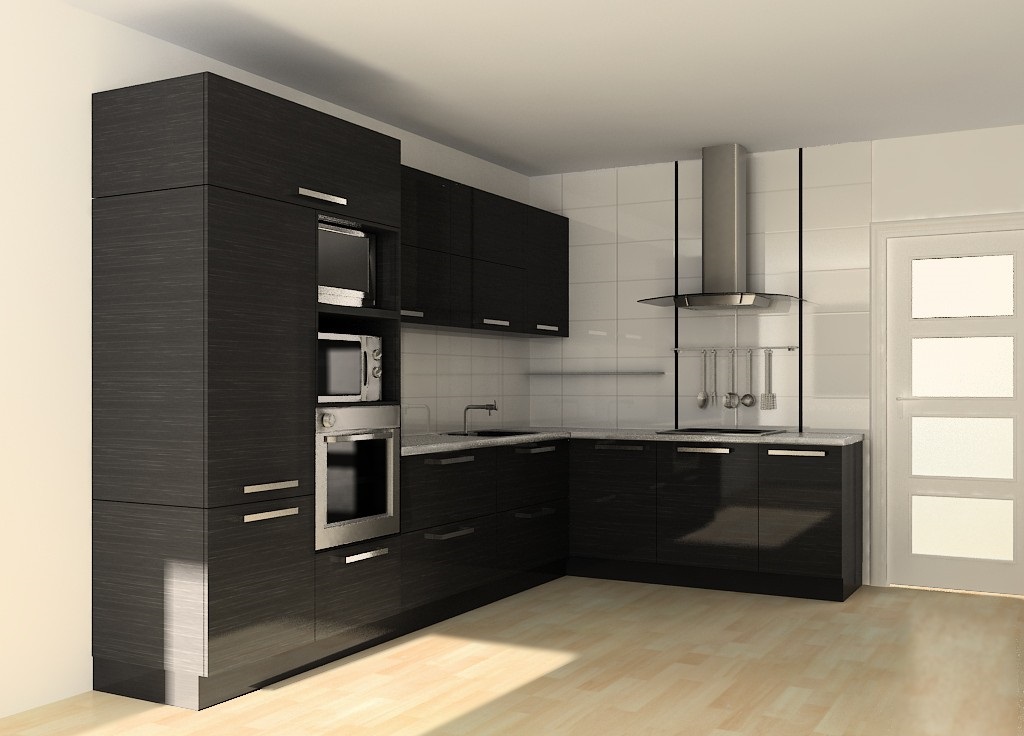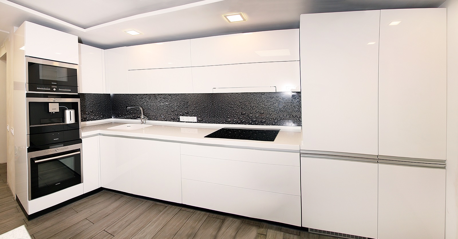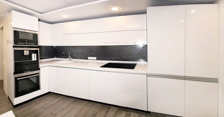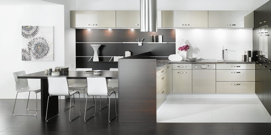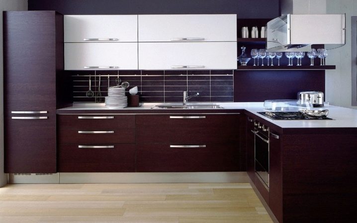 Haute technologie - Il est considéré comme l’une des tendances modernes du design. Lors de la création de cuisines de haute technologie, les concepteurs préfèrent utiliser le stratifié de couleur wengé, ainsi que le gris noir et parfois le blanc. Idéalement, vous devriez choisir un stratifié avec un motif sous une pierre ou un carreau. Les cuisines de ce style exigent le respect parfait des proportions, une utilisation maximale de l'espace et l'absence de pièces supplémentaires.