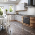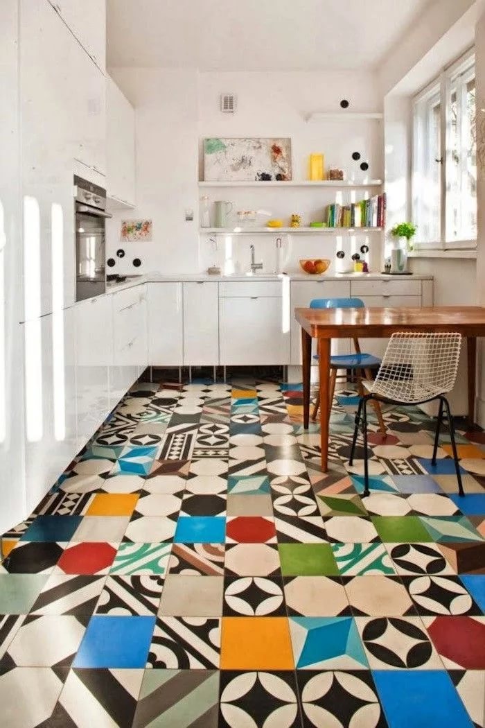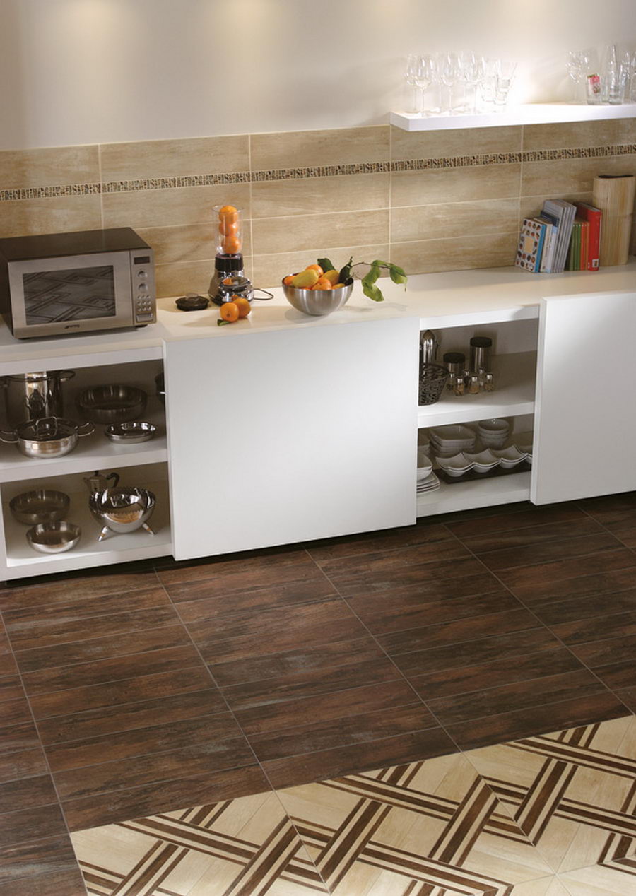 - Grâce à une vaste gamme de tailles et de couleurs, vous pouvez poser sur le sol de la cuisine n’importe quel ornement qui correspond à vos goûts et à la décision générale de style de la pièce.
