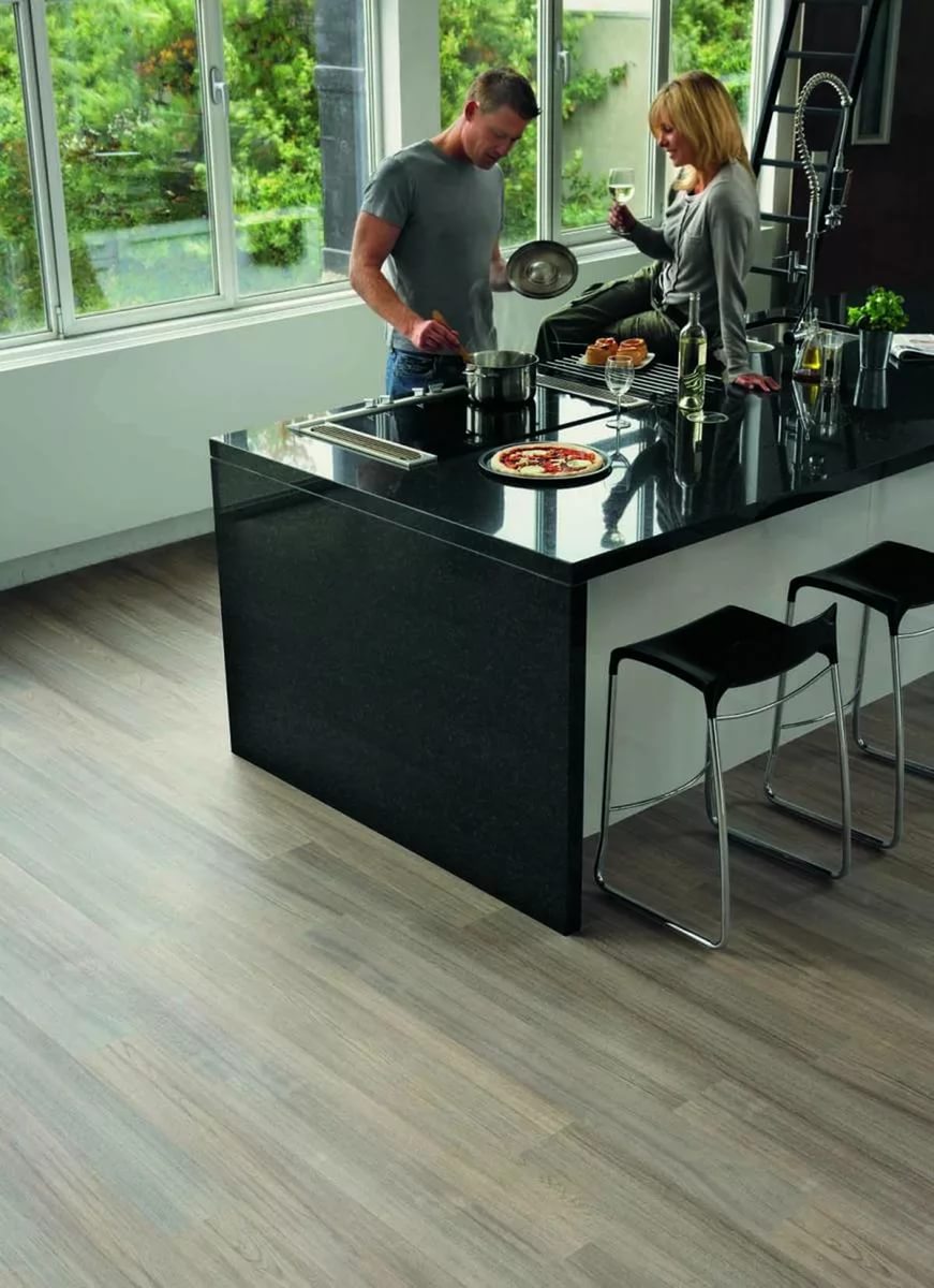 La cuisine est sans aucun doute l'endroit le plus visité de l'appartement. Un degré élevé de contamination, une humidité élevée ainsi que les éventuels effets mécaniques d'objets coupants et lourds imposent des exigences élevées en matière de qualité du revêtement de sol.