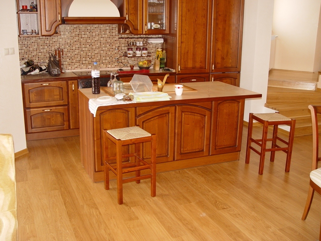 - C'est un matériau très résistant, mais vous devez choisir un revêtement d'une classe de résistance supérieure ou égale à 33 - même si un tel stratifié est plus cher, cependant, dans des conditions de cuisine, il durera beaucoup plus longtemps que les options moins chères.