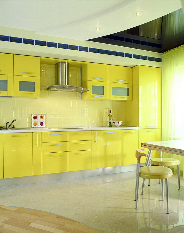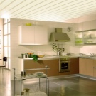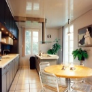 Mais les lacunes de cette conception ne peuvent pas être dites. C’est un exemple, mais pour une petite cuisine, par exemple, c’est très important: les plafonds suspendus «absorbent» une partie de l’espace. Si la cuisine est petite et que les plafonds sont bas, il vaut mieux abandonner les structures suspendues. Mais dans tous les autres cas - aucune restriction, à l'exception d'une petite recommandation - essayez de créer des couleurs vives dans la cuisine afin qu'elle paraisse plus spacieuse.