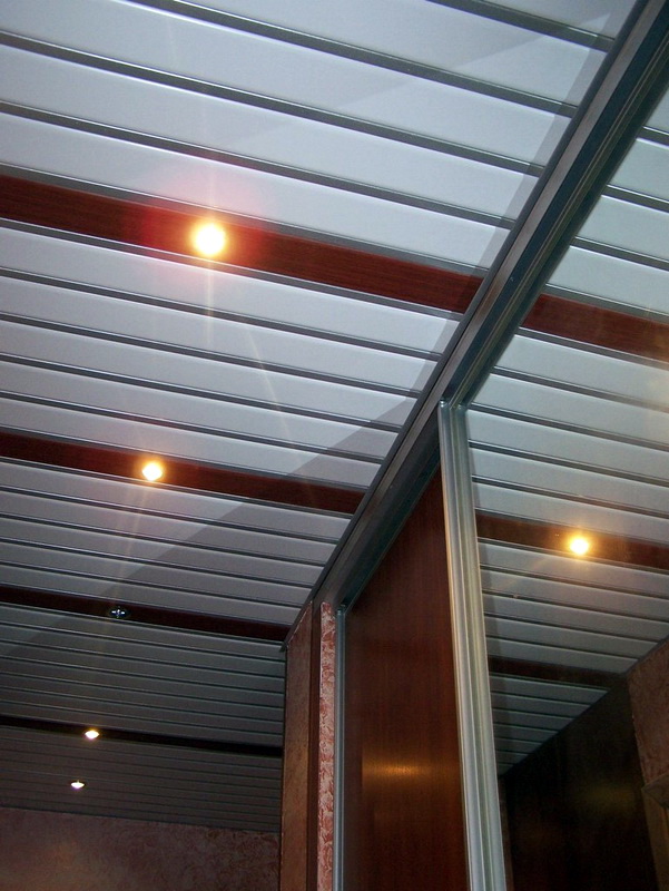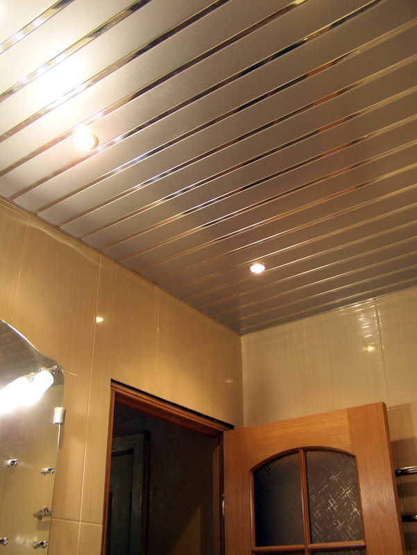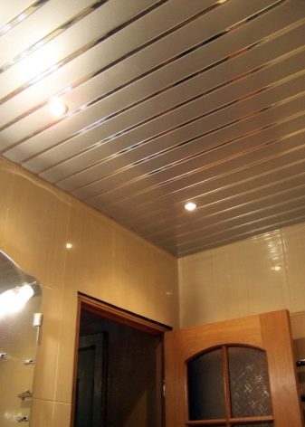 Souvent, pour la décoration des plafonds, utilisez également des panneaux en rack ou en plastique. C'est un matériau de qualité et son apparence est attrayante. En raison de la variété de couleurs, vous pouvez créer un design intéressant qui conviendra à tout intérieur.