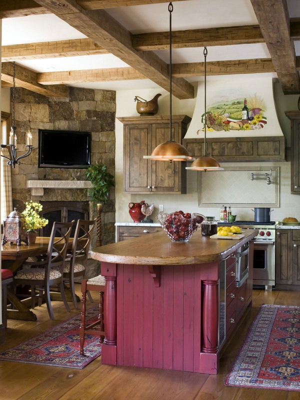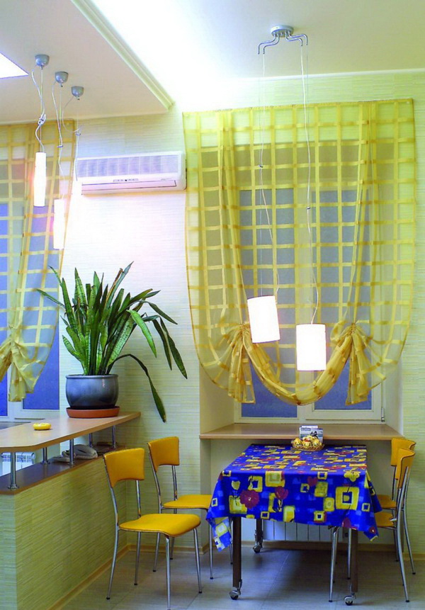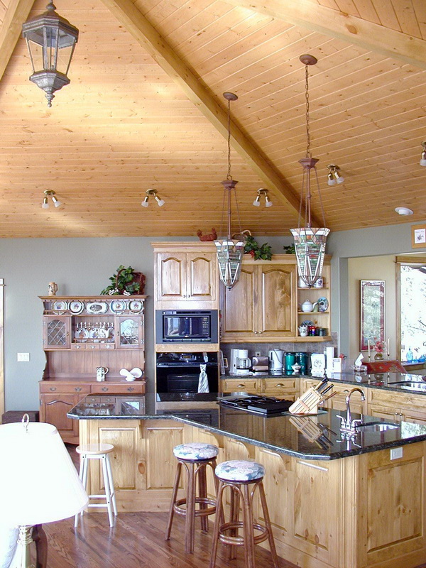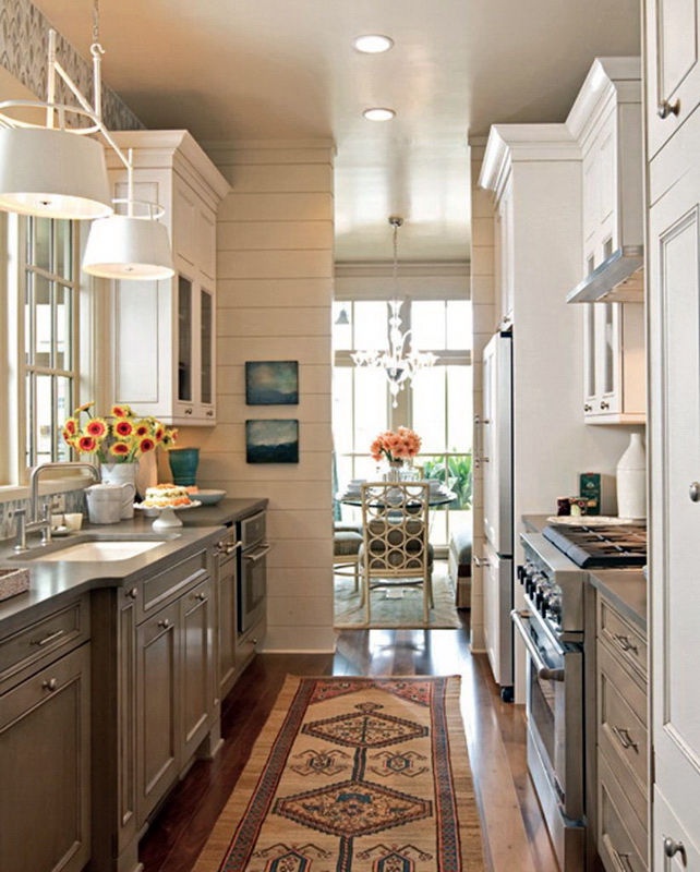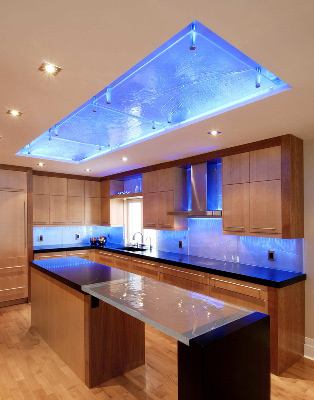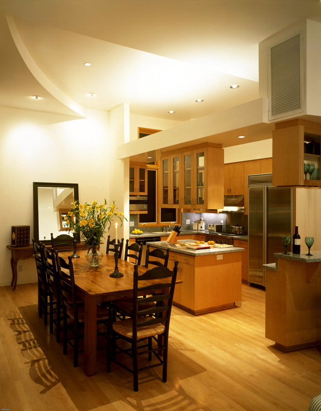 Si le milieu du plafond de la cuisine sur deux niveaux doit se présenter sous la forme d’un écran et l’organiser avec un papier peint avec un thème de cuisine ou un miroir, cette solution sera très originale et fera toujours plaisir à vous et à vos invités.