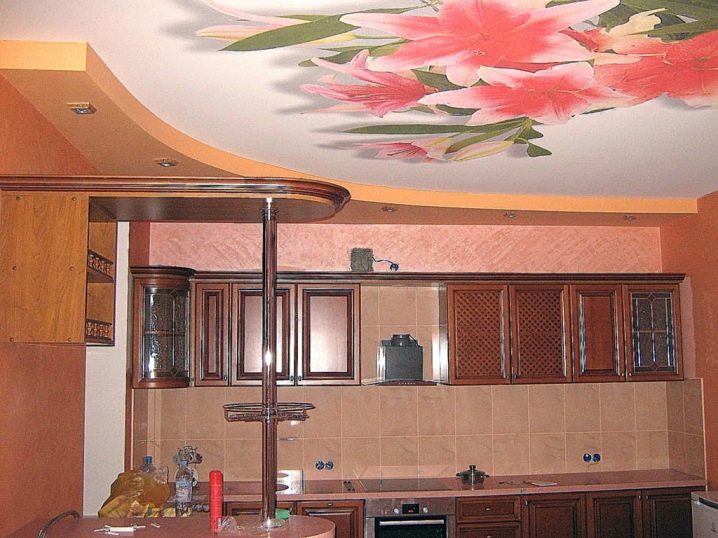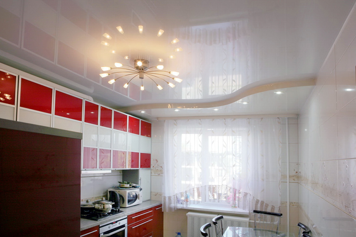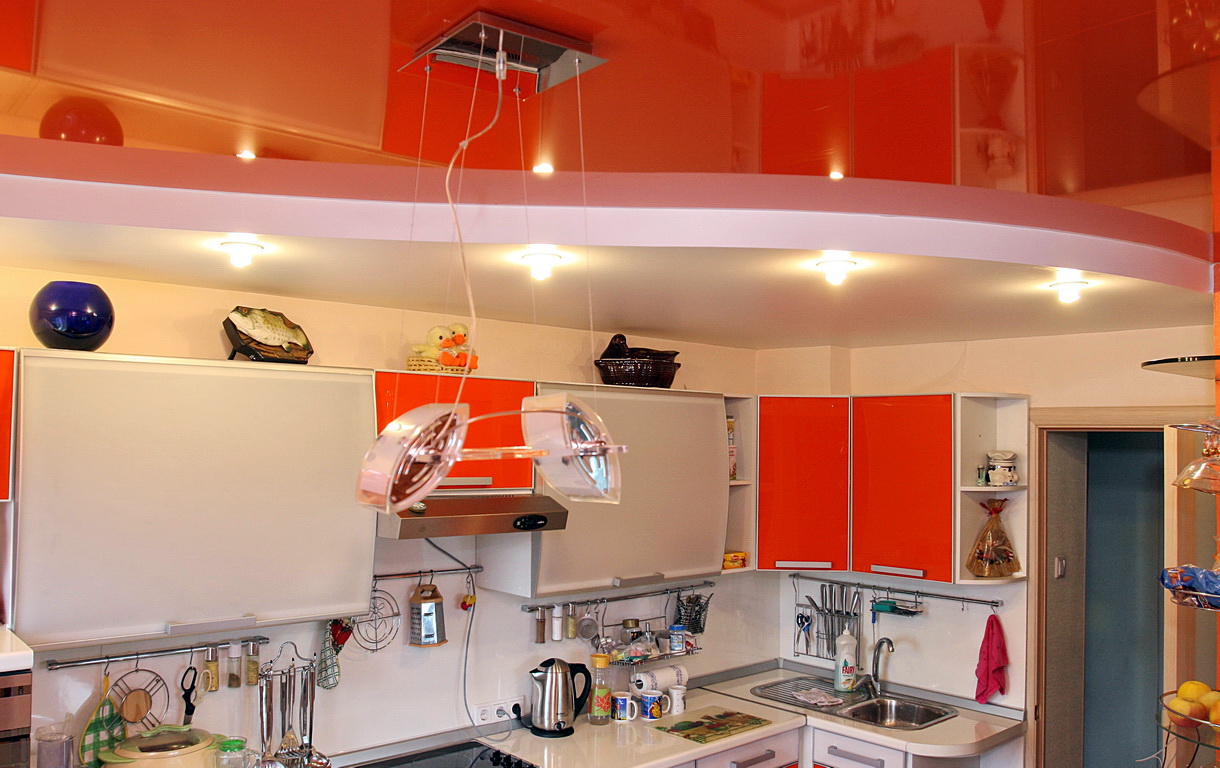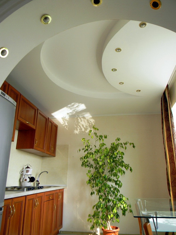 À l'aide de cloisons sèches, le plafond de la cuisine peut être décoré de trois manières: