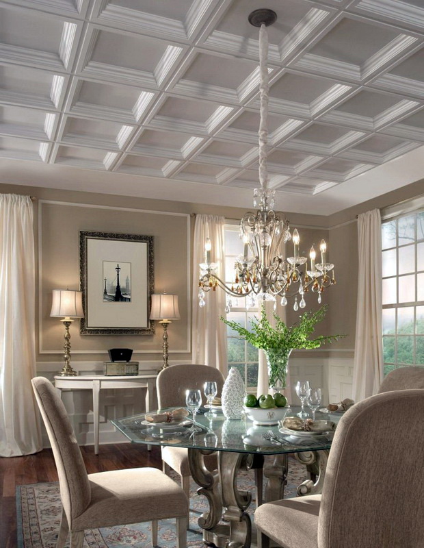 Il est préférable de ne pas traiter les trois dernières options en raison de leurs prix élevés, mais les cloisons sèches, les dalles de plafond et les panneaux sont des options appropriées. Dans les appartements russes, le plus souvent, il existe de tels plafonds suspendus.