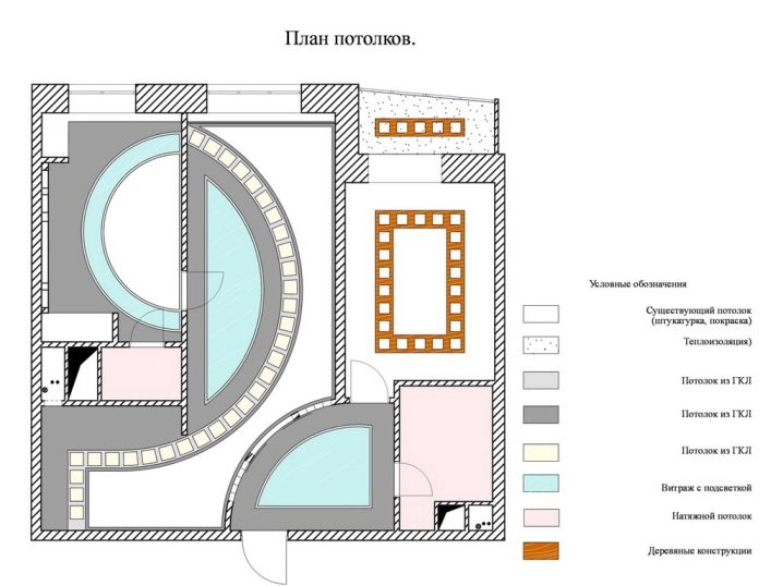 - plafond voûté type. Les dessins peuvent regarder les formes géométriques les plus différentes et plier un espace de différentes manières;