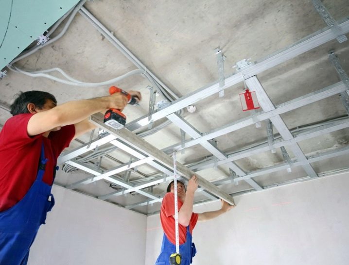 Le revêtement final exige un respect strict de toute la technologie. Toute la structure peut ensuite être fixée correctement et de manière fiable au plafond. Ainsi, la chose la plus difficile dans tout le processus est de fabriquer le squelette. Ensuite, il reste à choisir le matériau de revêtement, qui est la cloison sèche la plus courante, et à prendre soin du raffinement final - je veux dire peindre les cloisons sèches et installer les appareils.