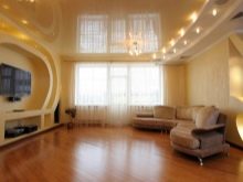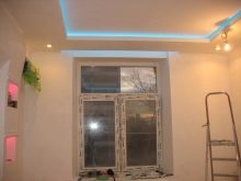 Notez que cette méthode est plus appropriée pour les salles hautes, car elle cache en outre 15 à 20 cm du plafond (la valeur varie en fonction de la profondeur de la niche). S'il n'y a aucune possibilité d'installer une niche, suspendez la corniche habituelle et fermez-la avec une moulure, en décorant toute la pièce autour du périmètre. Vous pouvez ainsi économiser la hauteur du plafond et trouver une solution peu coûteuse d’enregistrement.