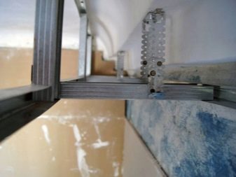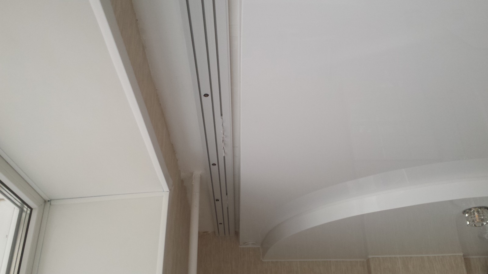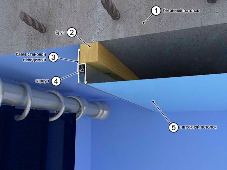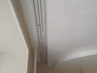 - Fixez le profilé à la poutre sous le plafond tendu et étirez-le, comme d'habitude, d'un bloc de bois au mur opposé. La niche est prête.