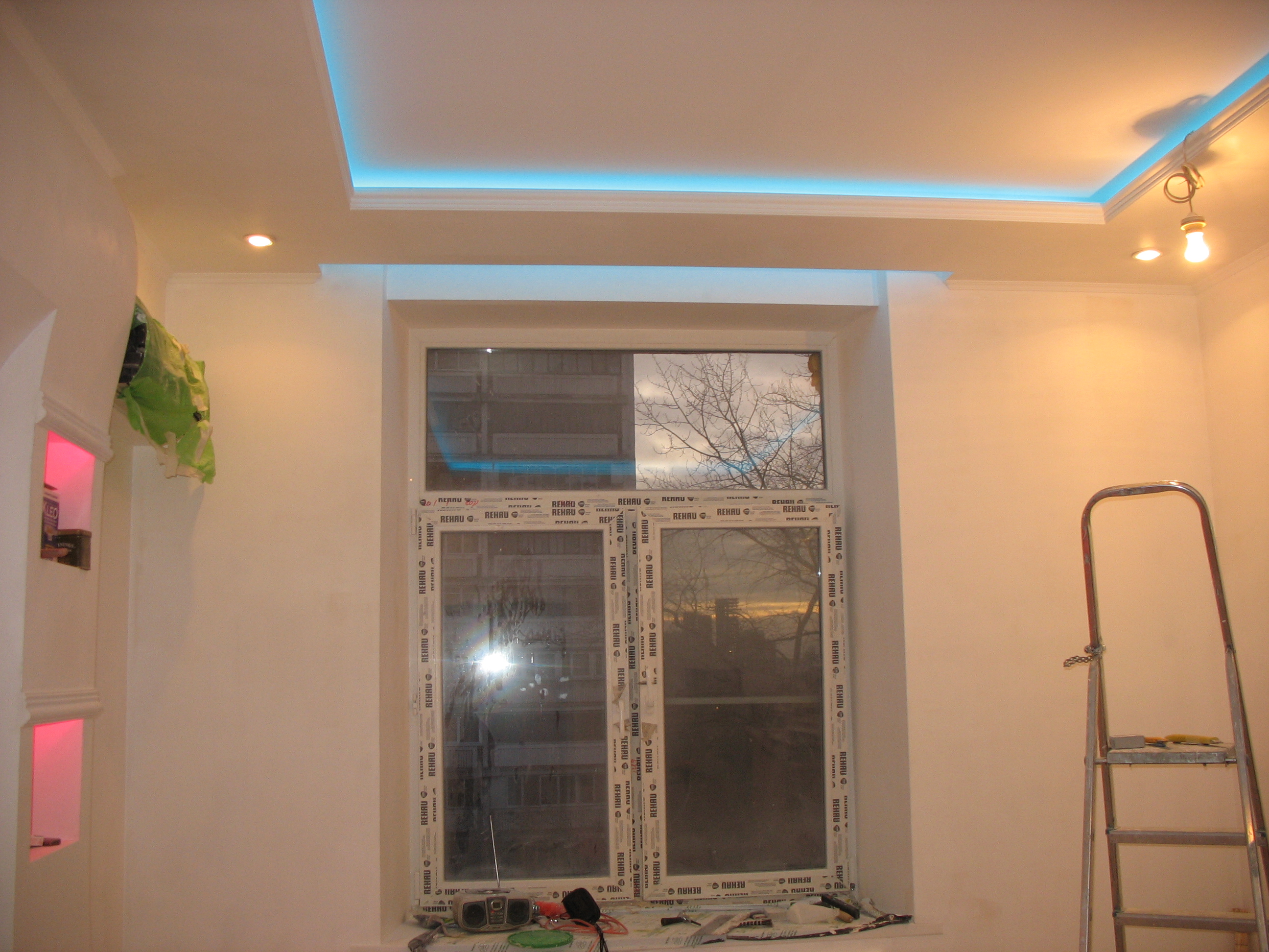 - La boîte est équipée autour du périmètre de la pièce le long des murs. Il est généralement constitué d’un rétroéclairage, contrôlé par un commutateur séparé, permettant de régler l’éclairage à volonté.