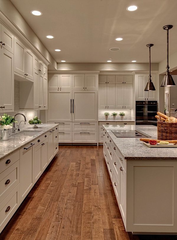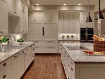 - Cuisine Sans ces lampes, ici, ne peut tout simplement pas faire. Avec leur aide, vous pouvez mettre en évidence un domaine spécifique, en éliminant la couverture de tous les autres. Dans la plupart des cas, ils sont installés au-dessus de la table, où sont effectuées toutes les opérations de cuisson de base.