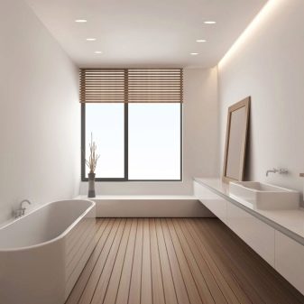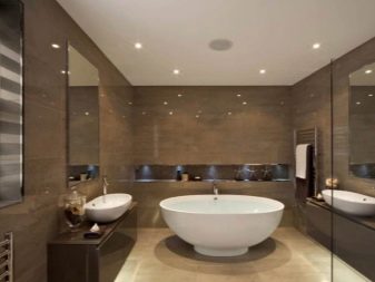 - Salle de bain. Appliquez des lampes de ce type ici uniquement dans le but de créer un effet décoratif. Très souvent, les spots de plafond complètent le mur ou le sol en retrait, placés dans la piscine.