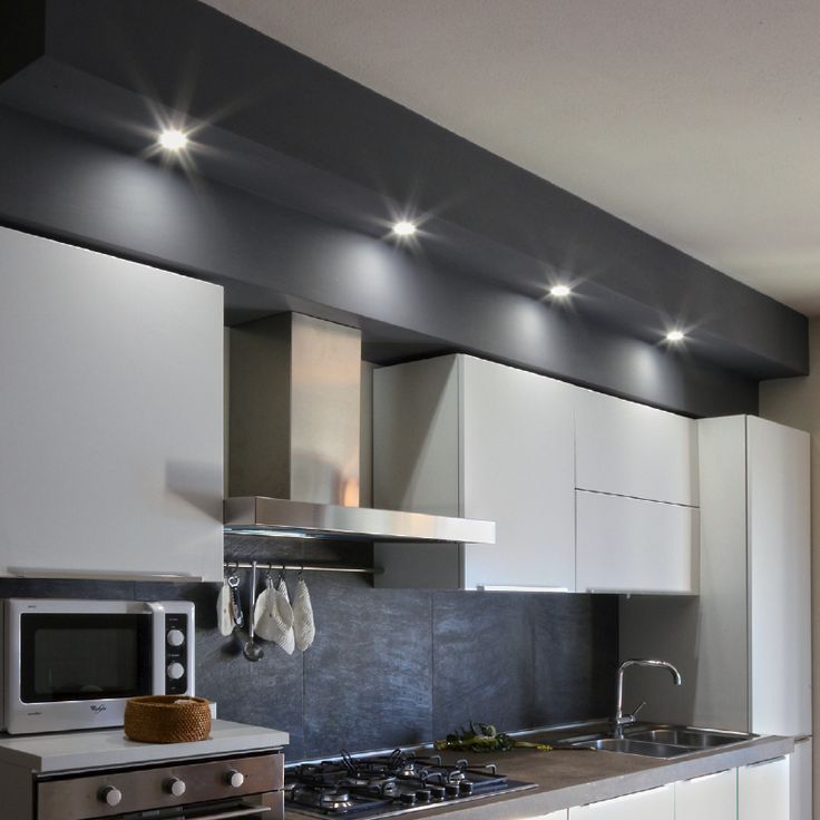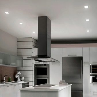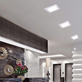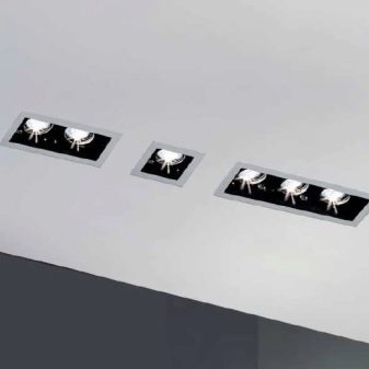 Les spots encastrés au plafond sont des modèles polyvalents. Avec leur aide, vous pouvez organiser l'éclairage à plusieurs endroits: