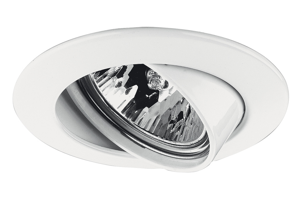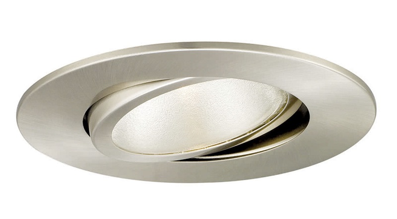- Pivotant. Les spots de ce type sont montés sur des charnières spéciales. Cela vous permet de changer la direction de la lumière dans plusieurs plans. Les modèles les plus simples ne peuvent se déplacer que dans une ou deux directions. Notez que l'angle de rotation ici est limité soit par le matériau du plafond, soit par le corps du spot. Fixation des appareils réalisée à l'aide de pinces métalliques ou de pièces incorporées.