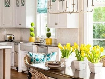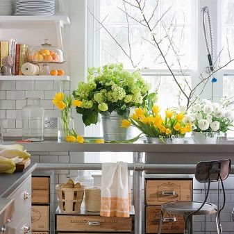 Il est important de ne pas en faire trop avec des fleurs dans la pièce. Si la cuisine est petite, alors laissez les fleurs être petites, et elles ne devraient pas être trop.