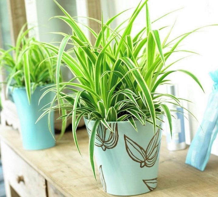 - Chlorophytum - cette fleur, entre autres, hydrate parfaitement l'air et le nettoie des substances nocives,qui apparaissent lorsque vous utilisez des cuisinières à gaz.