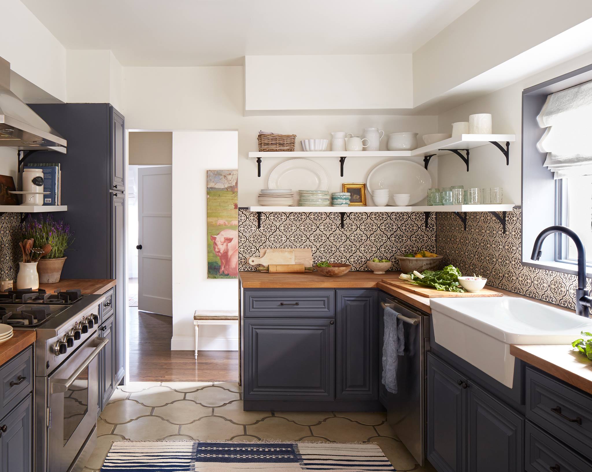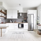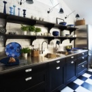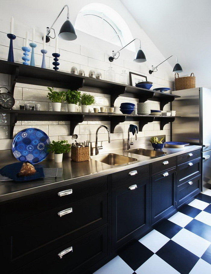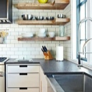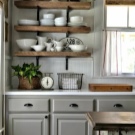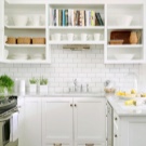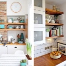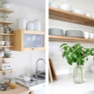 Ouvrir les étagères de la cuisine - c'est une décision stylistique intéressante qui conviendrait dans presque tous les intérieurs modernes. Combinez ces étagères ouvertes avec des armoires classiques ou complétez-les avec des rideaux pour obtenir le design le plus attrayant de votre cuisine.
