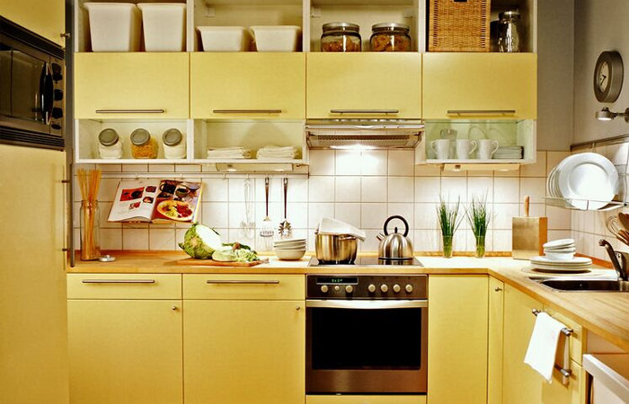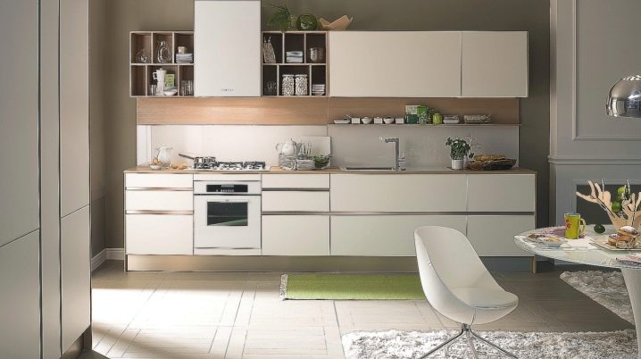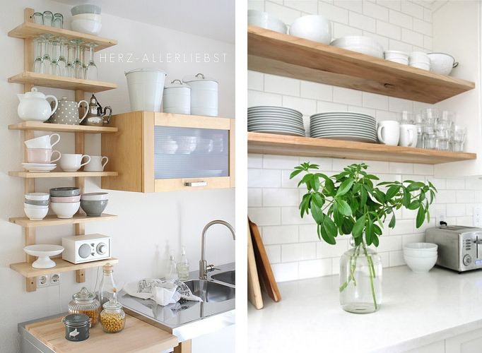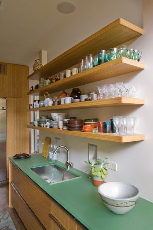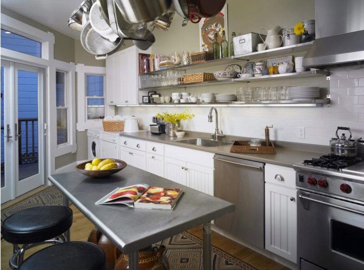 Les ménagères modernes sont attirées par le moment où, si les étagères de la cuisine sont ouvertes, vous n’avez pas à passer constamment du temps à ouvrir et à fermer les placards, et à vous demander où sont les choses nécessaires.