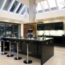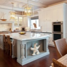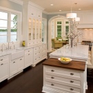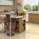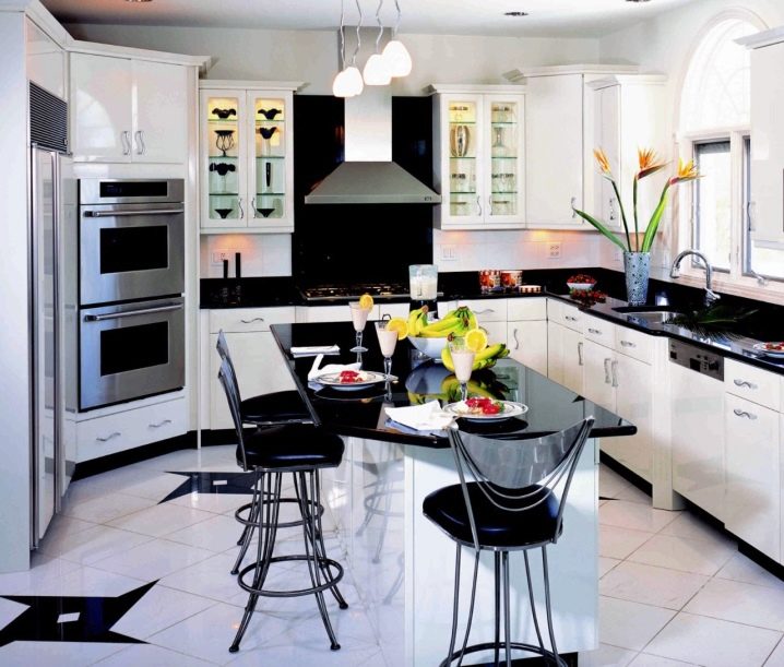 Si l'espace le permet, il est possible de créer un plateau îlot avec armoires et tablettes inférieures. Installation à la fois plus compliquée, mais il y aura une conception originale avec la séparation des zones de cuisine. Dans les intérieurs non standard, sous la fenêtre, vous pouvez placer un compartiment sous le poêle, le lave-vaisselle ou le placard. Tout dépend de l'imagination et des capacités du propriétaire.