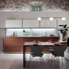 Pour les cuisines de petites tailles, une armoire de transformateurs très pratique est une solution révolutionnaire. Ils peuvent inclure des modules coulissants et rabattables avec fonctions de table, évier, plaques de cuisson pour 1 à 2 brûleurs avec four, étagères pour la nourriture et la vaisselle, treillis pour le stockage des assiettes, bac à vin ou à légumes. Et à l’état plié, ces meubles n’occupent pas plus de 1-1,5 mètres carrés. Leur grande capacité est obtenue grâce à l'utilisation d'espace utile dans toute la hauteur de la pièce. Des modèles d'angle de transformateurs d'armoires peuvent être installés dans un studio miniature, où il n'y a même pas de pièce séparée pour la cuisine.
