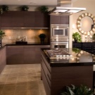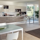 Si la taille de la cuisine le permet, il vaut la peine d'utiliser des casques d'écoute fonctionnels à part entière sur toute la largeur du mur de la pièce. Équipez de manière optimale la zone de travail du côté de l'évier, du poêle et de la hotte. Si possible, vous pouvez choisir l’ensemble de coins, qui capture les deux murs adjacents, pour que cela devienne encore plus pratique et confortable. Une unité de cuisine complète peut inclure les éléments suivants: