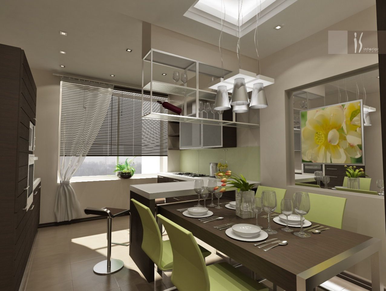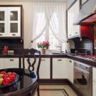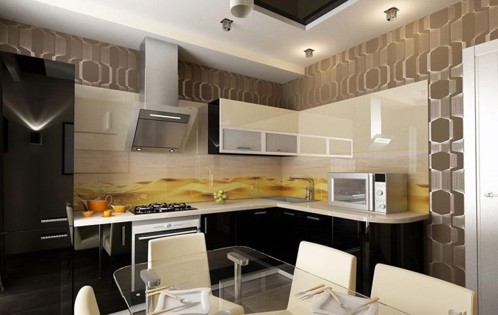 Pour une cuisine de petites dimensions, on privilégie les meubles compacts qui, avec une longueur et une largeur minimales, seront aussi spacieux et pratiques que possible. Ceci est réalisé grâce à l'utilisation de toutes les hauteurs possibles au plafond, d'étagères coulissantes, et non d'un système d'ouverture de porte battante. Pour l'agencement de la cuisine, dont la superficie n'excède pas 10 mètres carrés. m., les familles choisissent des armoires-tables, des armoires et des transformateurs.