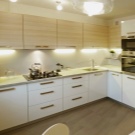 Faites habituellement 3-4 compartiments des armoires supérieures pour ranger diverses choses, dans les modules au-dessus de l'évier peut être monté une étagère pour la vaisselle,il est donc plus pratique de mettre les assiettes en place après le lavage. Un module avec capot intégré peut être installé au-dessus de la table de cuisson ou de la table de cuisson.