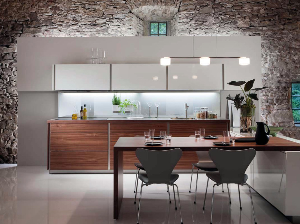 L'acier inoxydable, les métaux non ferreux et le plastique sont utilisés pour les meubles et les accessoires de cuisine, tandis que le verre organique ou minéral peut être utilisé pour la décoration. Il est préférable de choisir des pièces en acier comme éléments les plus durables.Les poignées et autres accessoires extérieurs sont souvent en plastique avec un revêtement métallique, mais avec le temps, ils ont tendance à s’user et la vue n’est pas très représentative.