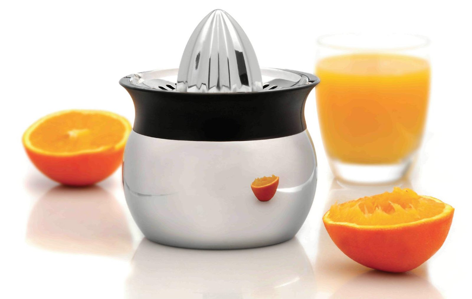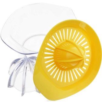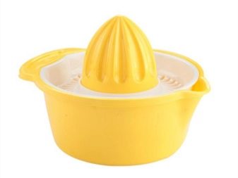 Presse-agrumes de petite taille plus facile à nettoyer qu'une grande unité. Oui, et vous pouvez le stocker non seulement sur la table, mais également dans un tiroir ou dans tout autre endroit. En outre, il convient de noter que le petit presse-agrumes coûte beaucoup moins cher.