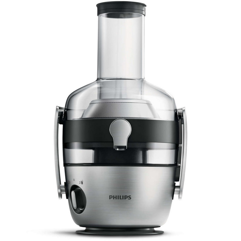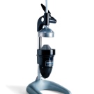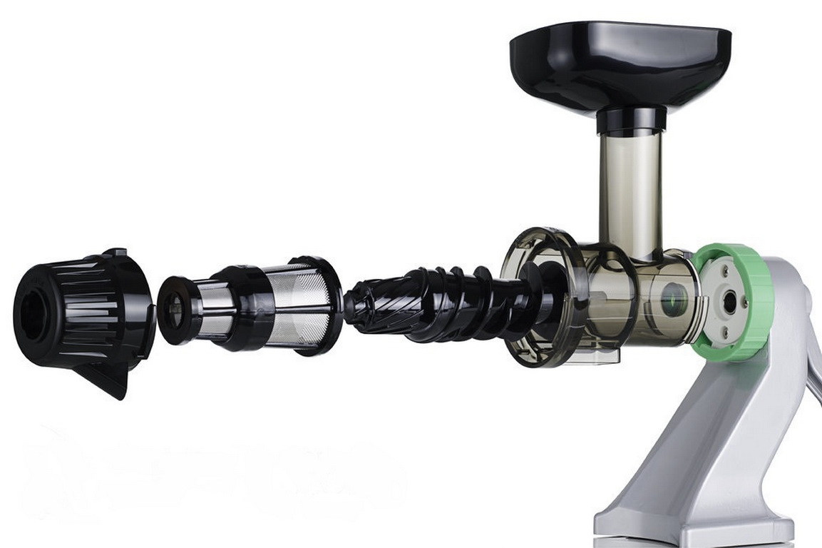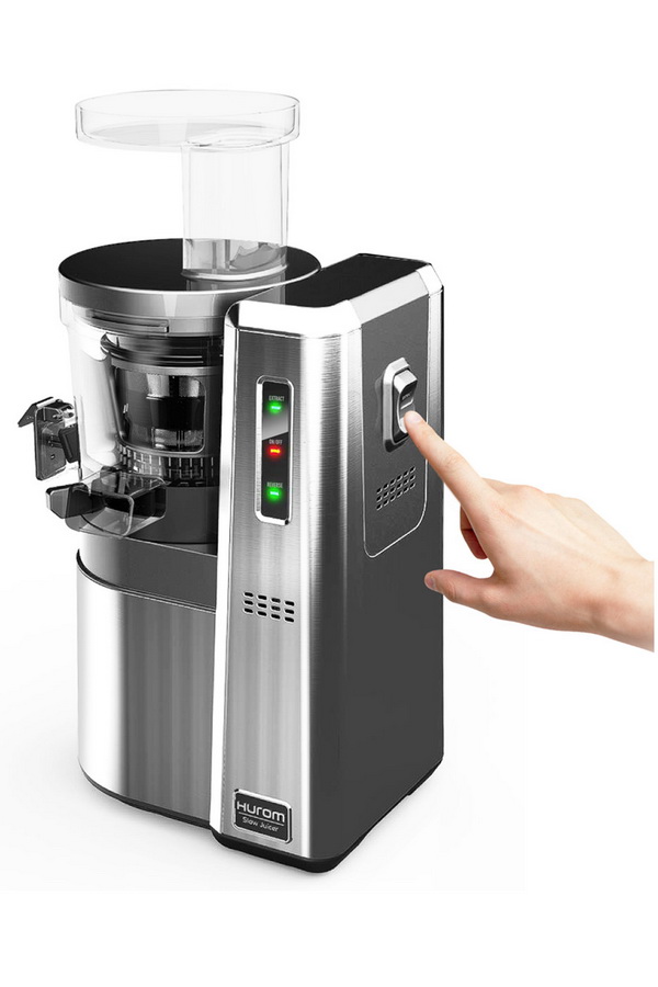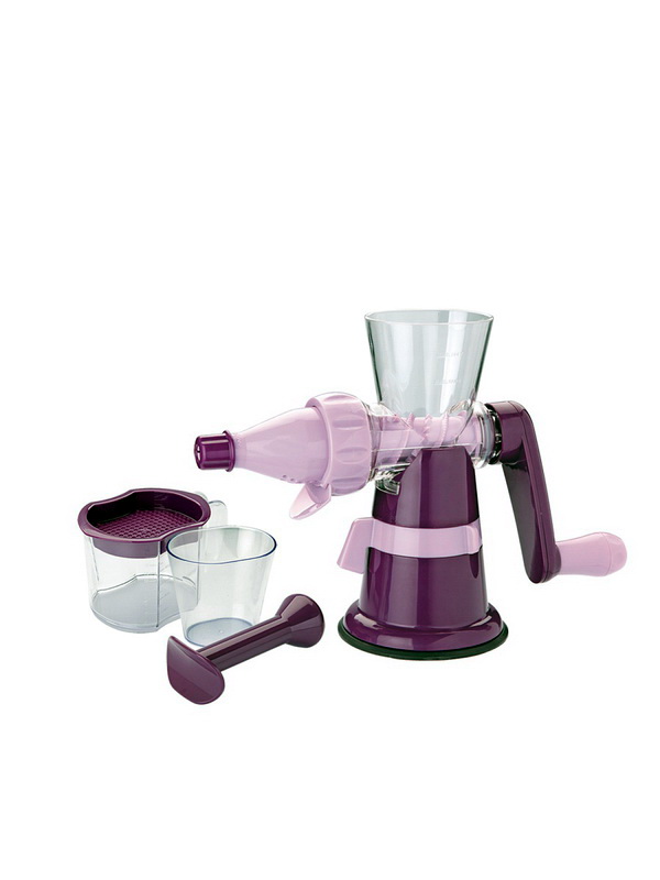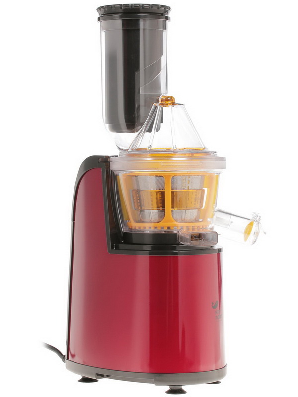 La version mécanique de la centrifugeuse, qui appartient au niveau professionnel. Le principe de fonctionnement de l'appareil repose sur le pressage à froid, ce qui permet d'obtenir un produit 100% naturel. L'appareil est en acier inoxydable, ce qui élimine l'oxydation du jus.