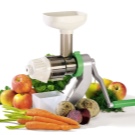 Shnekovye. Le principe de fonctionnement de ces centrifugeuses est le broyage soigneux des produits avec une vis hélicoïdale (comme un hachoir à viande). Ensuite, la masse traitée passe à travers un tamis fin qui sépare le gâteau du liquide. Avec un tel essorage, la température ne monte pas et le jus ne perd pas de vitamines à cause du traitement thermique forcé.