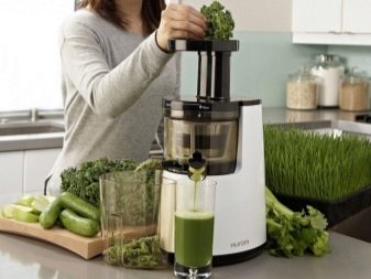 Selon les propriétaires, le modèle intégré prend beaucoup moins de place. Quelqu'un aime les jus avec pulpe, et quelqu'un choisit pour la purée de fruits et légumes. Il existe des options avec auto-nettoyage, avec deux vis. Pour les gros volumes de jus et pour une famille nombreuse, certains aiment le modèle semi-industriel. Un modèle autonettoyant efficace plaira aux hôtesse occupées. Bien sûr, le presse-agrumes est une vraie découverte et un salut pour le foodist cru. Le presse-agrumes peut être plug, jack, vis et électronique.