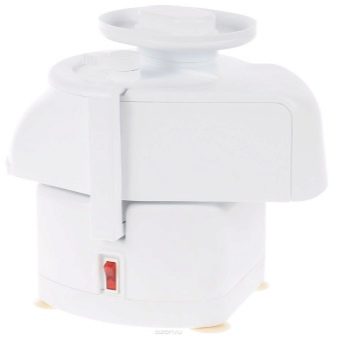 Kuryanochka - un appareil populaire et économique du fabricant national. Avec ce modèle, vous pouvez non seulement obtenir du jus de fruit, mais également de la purée de pomme de terre et de la fécule de pomme de terre.