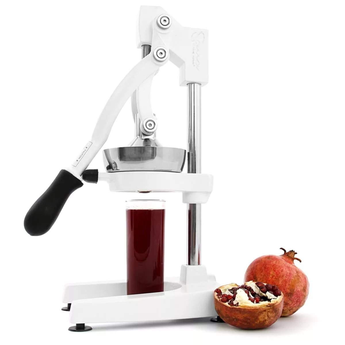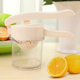 La centrifugeuse manuelle de bureau - une presse porte toujours le nom de levier ou de piston.Avec lui, à la maison, vous pouvez obtenir non seulement du jus d'agrumes, mais aussi de la grenade et de la tomate. Bien que ce soit simple, mais avec son aide, il est facile de préparer une petite quantité de jus naturel. Beaucoup de gens aiment les jus de fruits frais.