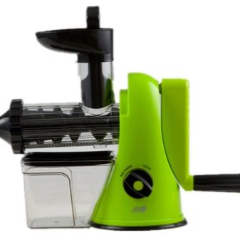 La centrifugeuse mécanique est alimentée par un levier qui oblige la presse à presser des légumes et des fruits. Le modèle manuel ressemble à un hachoir à viande, à condition que le couteau soit tranchant. Appareil pour les agrumes important bon attachement sur lequel le fruit est placé. Démonter une telle machine ne sera pas difficile. Certains modèles ont également un tamis qui empêche la chair de pénétrer dans le produit fini.
