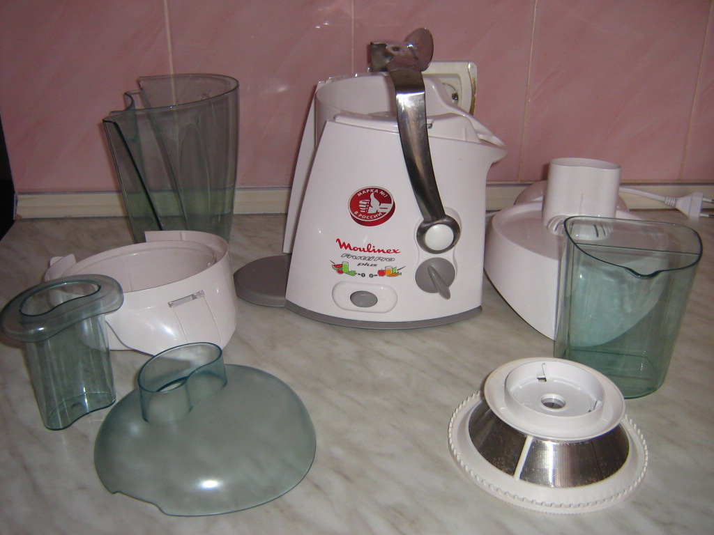 Coupe robot - un modèle puissant de la marque française. Il dispose d'un système de chargement automatique sans poussoir. Il est possible de faire du jus à partir de variétés de fruits et de légumes dures.