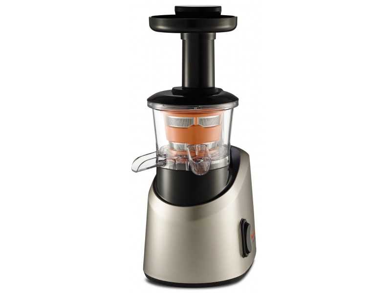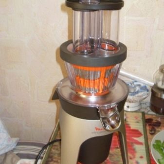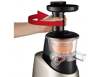 - Arrangement vertical de la vis. Ces modèles sont très populaires dans la population ces dernières années. Ils n'ont aucune ressemblance avec un hachoir à viande, il y a un bol cylindrique dans lequel une grille en acier est de plus petite taille et un obagaterer fait un cercle autour du bol. Ils sont capables de presser professionnellement le jus des fruits, de faire du vrai beurre à partir de différentes graines. Le principal avantage de cette méthode de préparation est la préservation de toutes les propriétés bénéfiques et des vitamines du produit, car il n’ya pas d’exposition à la chaleur ou à la lumière.