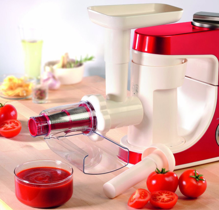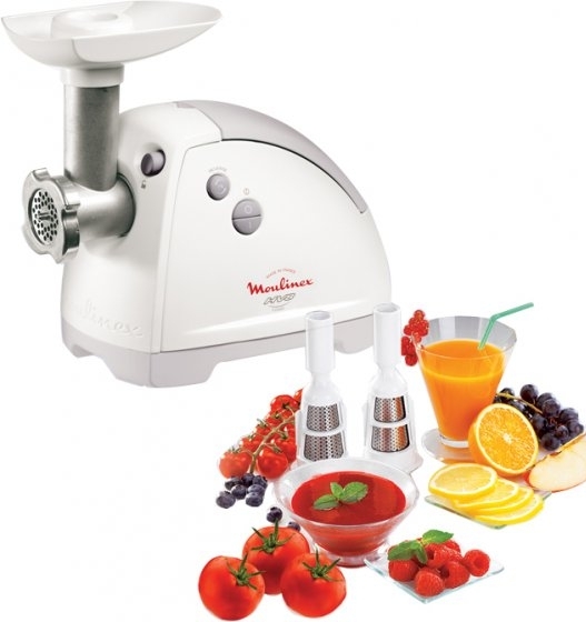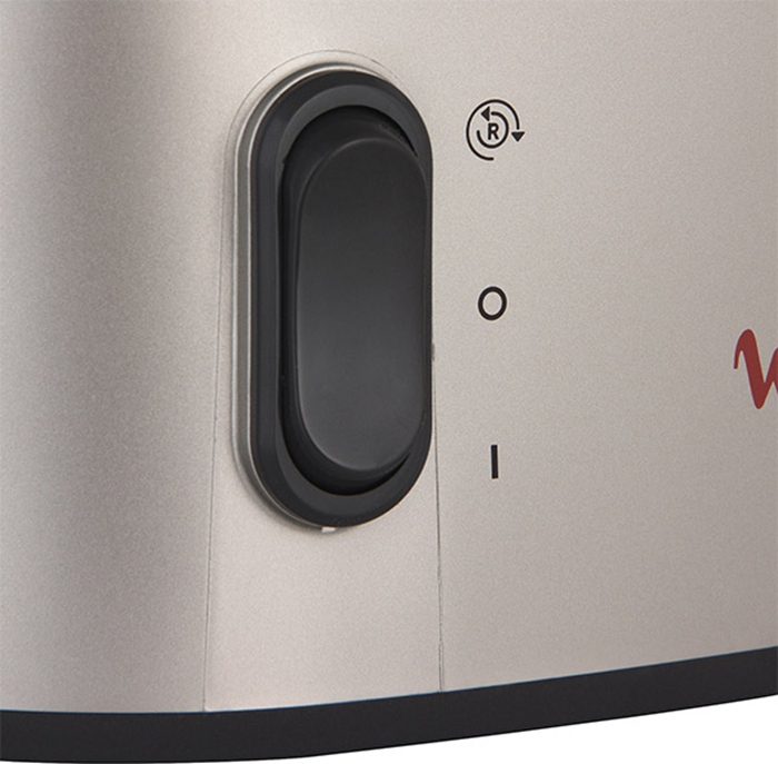 Le mécanisme comporte un bouton «inversion» pratique et utile, particulièrement utile lors du traitement des herbes et lors des arrêts dus à la présence de petits os. Cette version du mécanisme ne limite pas le choix du produit à son propriétaire, qui gère calmement les pommes, les ananas, divers légumes verts, les plantes utiles et d’autres légumes, ainsi que les fruits.
