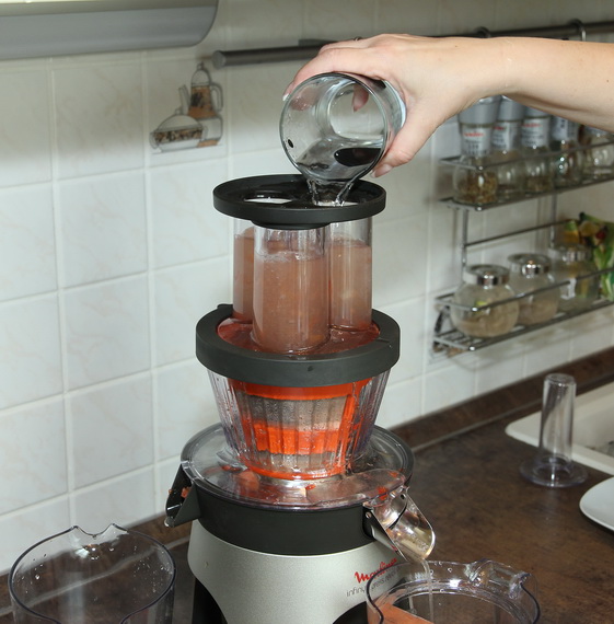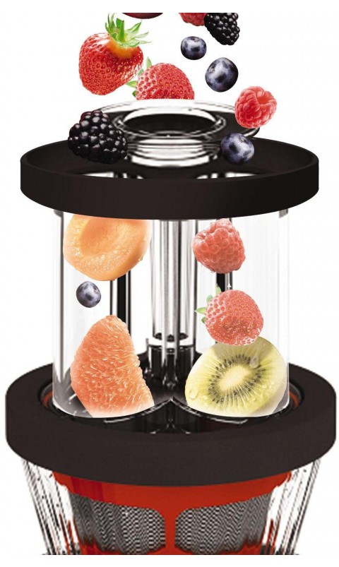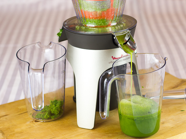 En même temps, les petits os comme les raisins ou les poires sont parfaitement broyés, ce qui ajoute de l’utilité au jus et en modifie le goût.