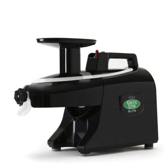 - Tribest Green Star Elite GSE-5300. Ce modèle est une centrifugeuse à double vis dont la productivité est plusieurs fois supérieure à celle des appareils à une vis. La machine peut être utilisée à la maison ou pour des tâches plus importantes dans les restaurants et autres établissements. Juicer peut remplacer complètement un robot culinaire, car il peut broyer divers produits, y compris la viande. Inclus sont des buses spéciales qui vous permettent de produire du jus avec de la pulpe, dont la quantité est réglée à l'aide d'une fonction spéciale de l'appareil. La centrifugeuse fonctionne presque en silence, ce qui lui permet d'être utilisée pendant que l'enfant dort.