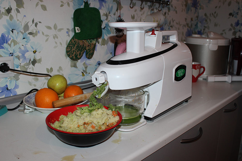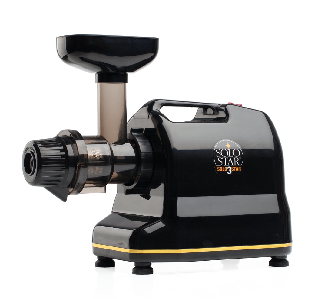 - Extracteur de jus SoloStar 3. Cette centrifugeuse est un appareil universel permettant d'obtenir du jus de divers produits. Vous pouvez même survivre à tous les plus utiles des cônes et des aiguilles de sapin. La machine fonctionne sur le principe de la pression à froid, ce qui vous permet d’économiser un maximum de vitamines et d’oligo-éléments. La vitesse de l'appareil - 80 tours par minute, ce qui est amplement suffisant pour obtenir une grande quantité de jus en peu de temps. La machine est sûre, elle offre un verrouillage et un arrêt automatiques en cas d'assemblage incorrect ou de dysfonctionnement.